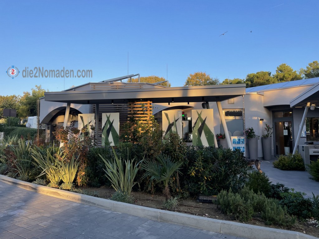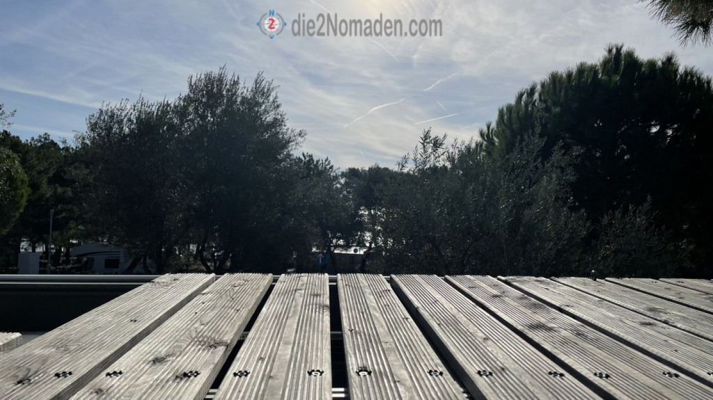 Bei der Anmeldung wurde uns ein Platz in der Nähe der Mobilhomes mit einem schönen Meerblick zugewiesen.