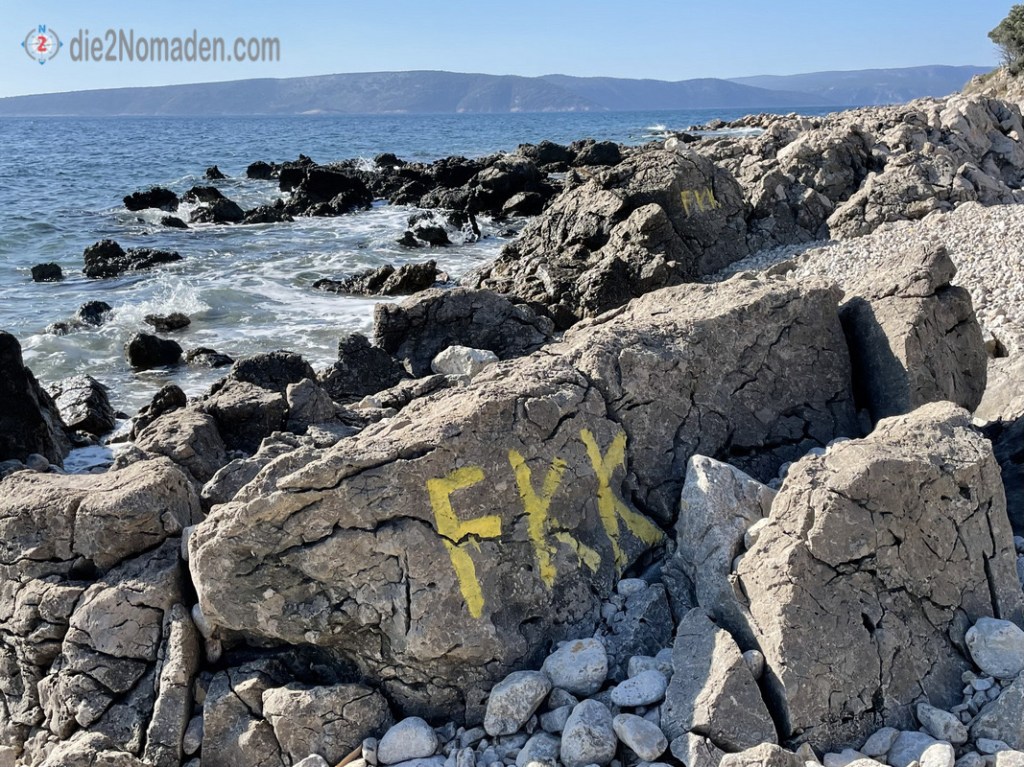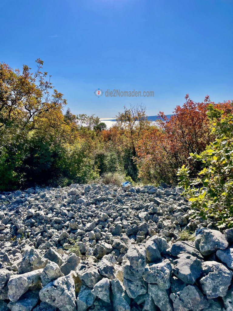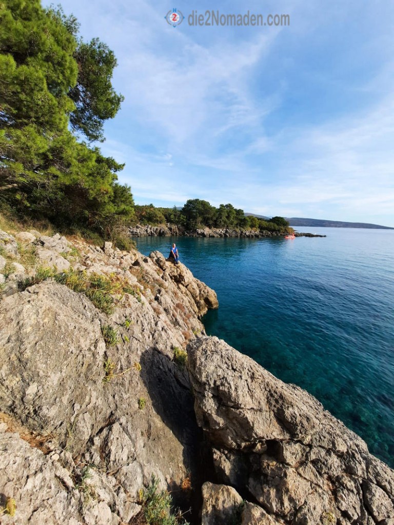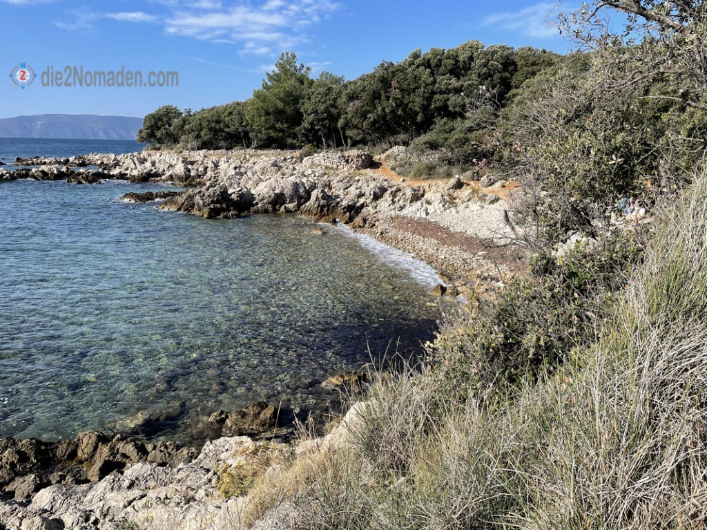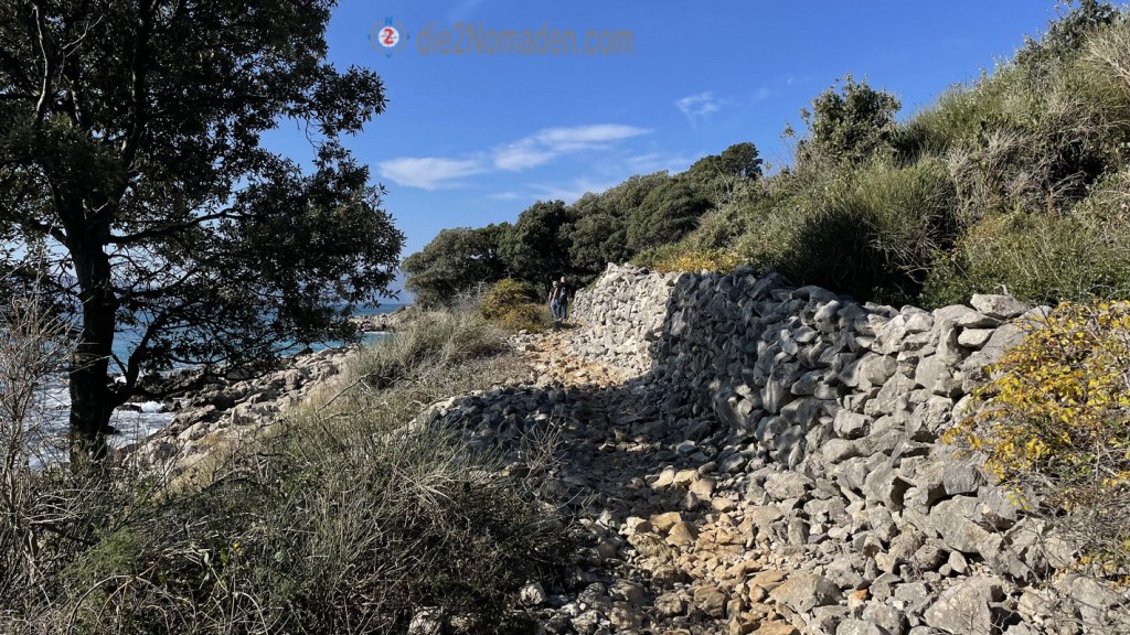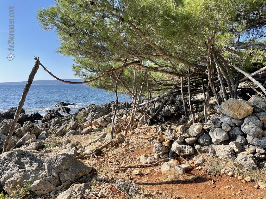 Also verlassen wir bei der Konoba Karaka den Campingplatz und wandern durch die Küste entlang teils über felsige Bereiche, andererseits durch den Wald.
