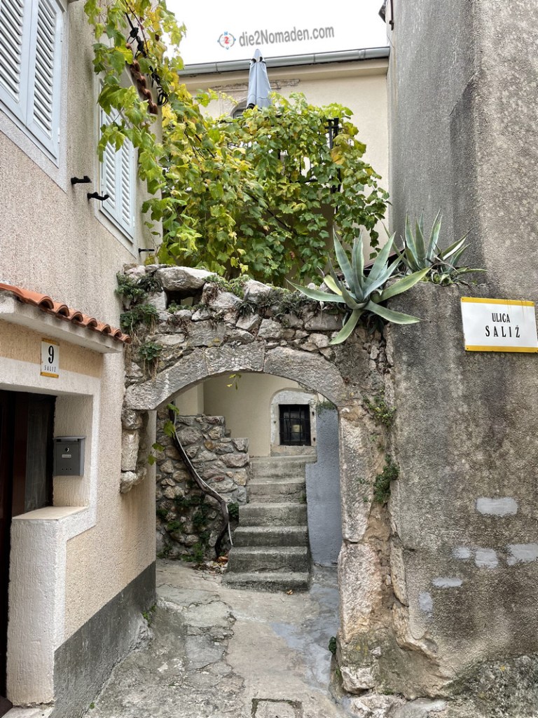 Wir schlendern durch die engen Gassen, besuchen die Kirchen, bestaunen die heimischen Flora und deren Früchte genießen auf einer Aussichtsterrasse am nördlichen Ende von Vrbnik einen tollen Espresso, besuchen Wein- und Spirituosengeschäfte und versuchen abermals, die schmalste Gasse der Welt „zu bezwingen“.