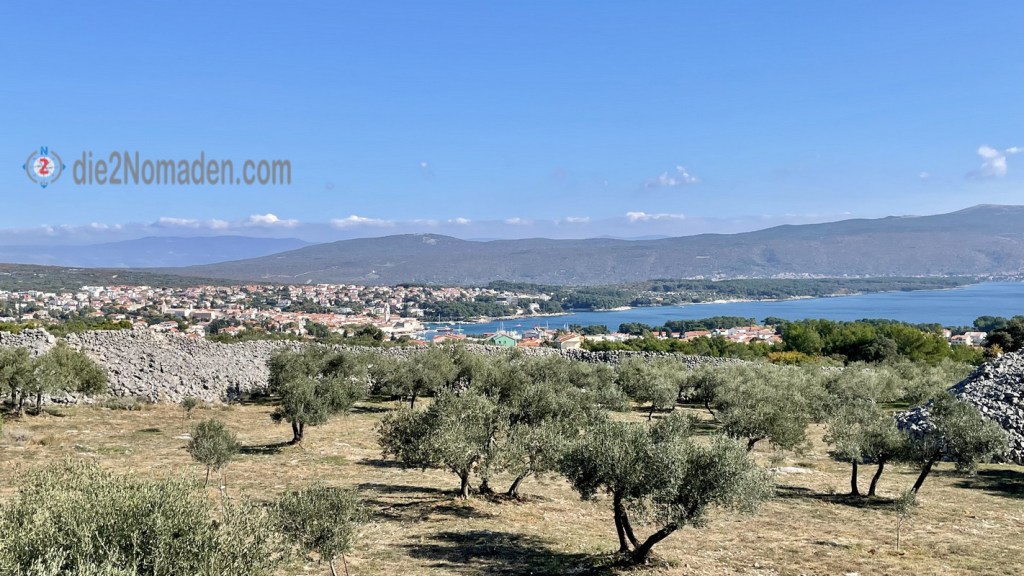 Vorbei an Olivenhaine kommen wir im Hafen von KRK an, gehen zum Campingplatz weiter und genießen im campeigenen Restaurant, dem „Oliva Grill“ eine Runde gutes Bierchen.