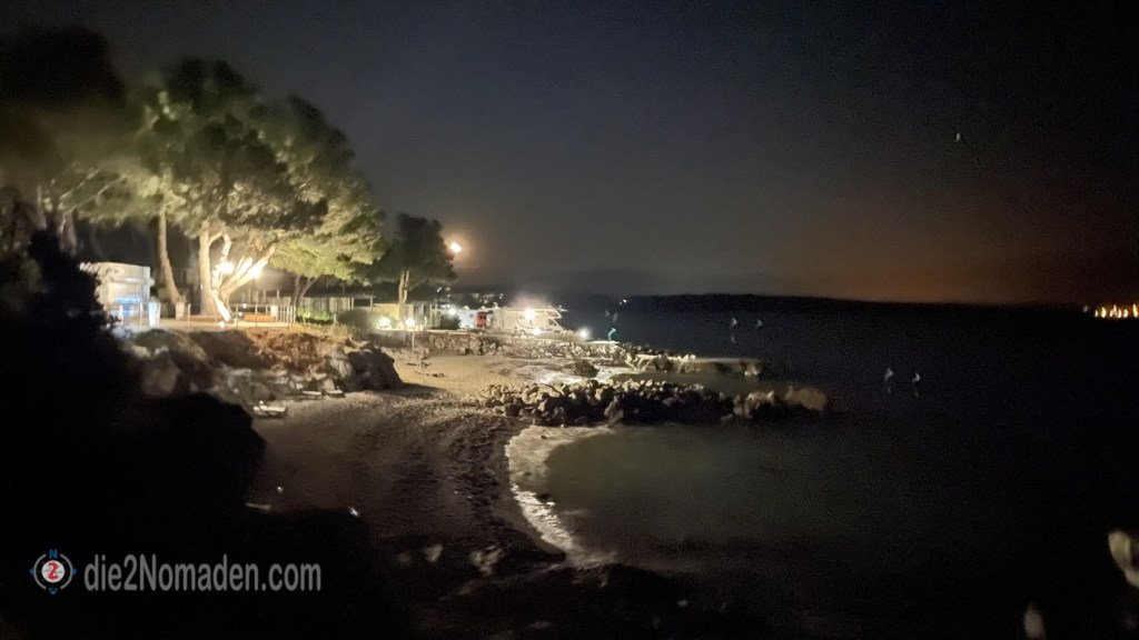 Am späteren Abend nehmen wir in diesem Lokal noch unser Abendessen ein, spazieren anschließend noch am Strand entlang zu Mobilheim unserer lieben Freunde, spielen noch einige Runden bei bestem Vrbnik-Wein und beenden so den Tag.