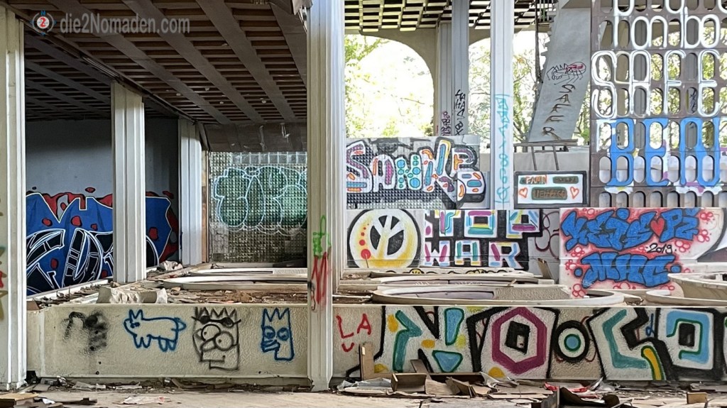 Nach wenigen Schritten erreichen wir die ersten Ruinen des berühmtesten Hotels Europas aus den 70er-Jahren.