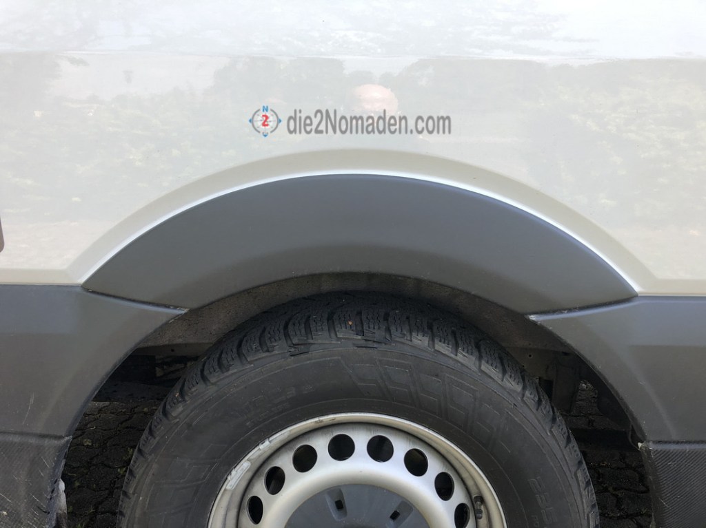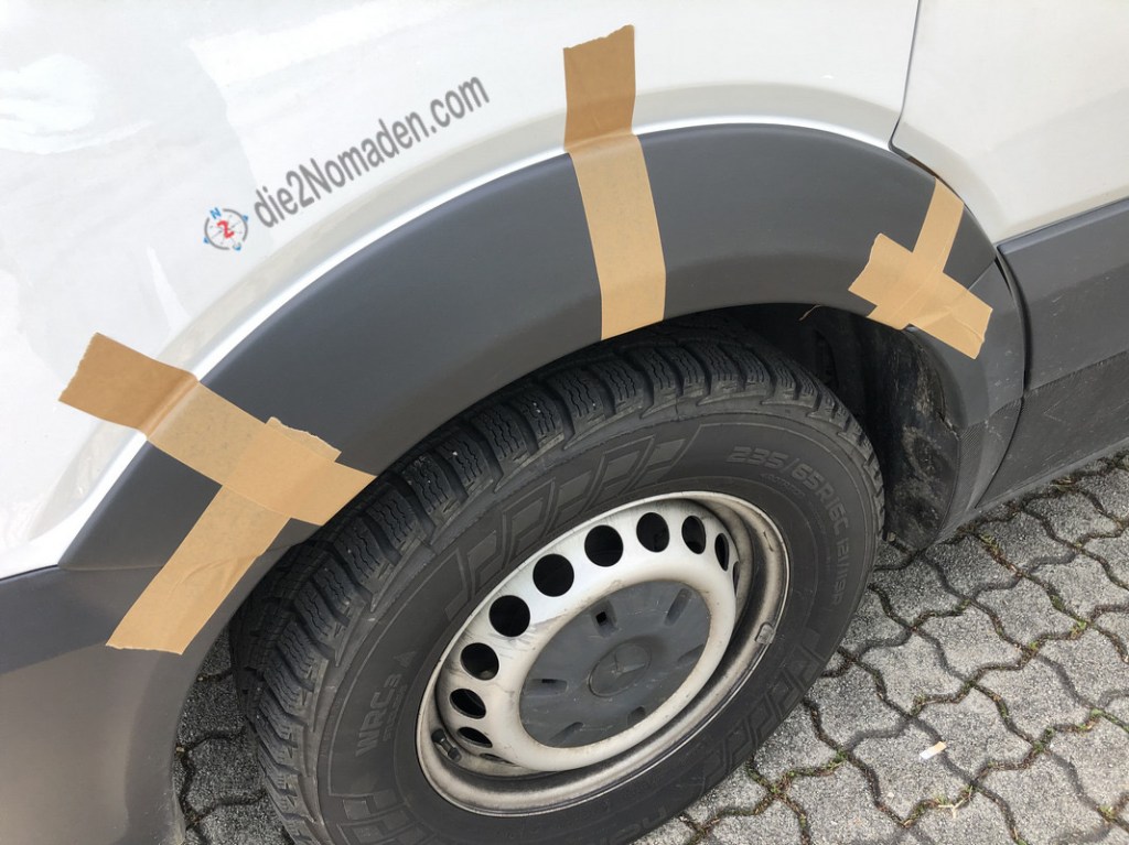 Um die Radkästen außen zu schützen und die Optik ein wenig aufzufrischen, werden nun noch der Radlaufschutz mit Sika geklebt.