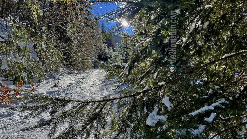 Auf halber Strecke zur Schafferreith kommt linksseitig eine Abzweigung mit der Nr. „16/209/280“, die hauptsächlich von Schneeschuhwanderern genutzt wird.