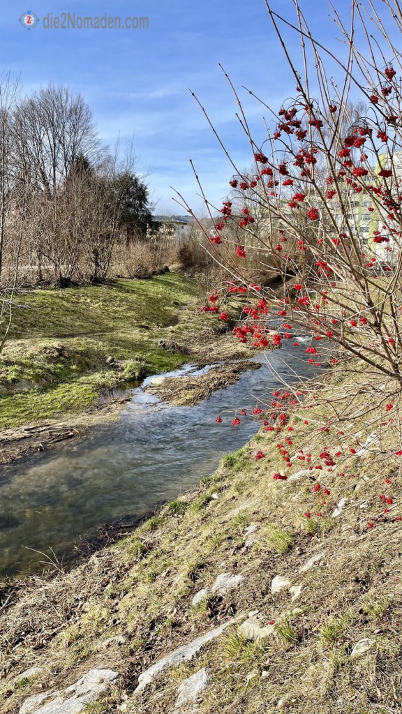 Mein lieber Herr Schwager kennt die Stadt ja aus beruflichen Gründen wie sein West’ntaschl und so fallen wir durstig im nahen Volksheim Dornach ein, wo wir uns ein kühles Bierchen gönnen, bevor wir zielstrebig Richtung Autoparkplatz weiter wandern und dabei noch sehr nette Einblicke in die Natur genießen.