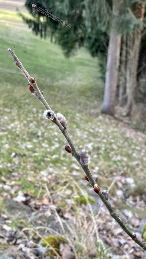Wir passieren ein Waldstück mit enormen Sturmschäden der letzten Tage und Nächte. Aber immer wieder öffnet sich ein Fenster mit herrlicher Aussicht, die Eichkätzchen flitzen von Baum zu Baum und das Gezwitscher der Vögel verspricht den Frühling.