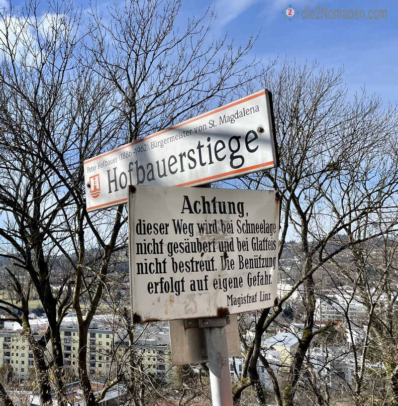 LINZ. Unseren Stadtspazierer starten wir in der Ferdinand-Markl-Straße Richtung Magdalena-Kirche, die vom Hügel in der Sonne zu uns herunterstrahlt. Hinter der Berufsfeuerwehr Linz, Feuerwache Nord nehmen wir die Hofbauerstiege und erreichen bei der Kirche St. Magdalena den Einstieg in die Pferdebahnpromenade.