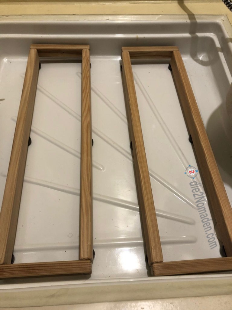 Als Abhilfe musste ein Holzeinlage für die Duschwanne her.