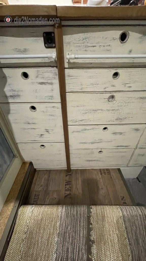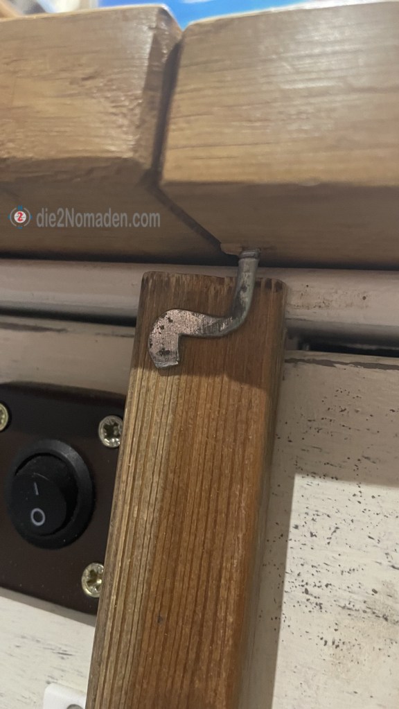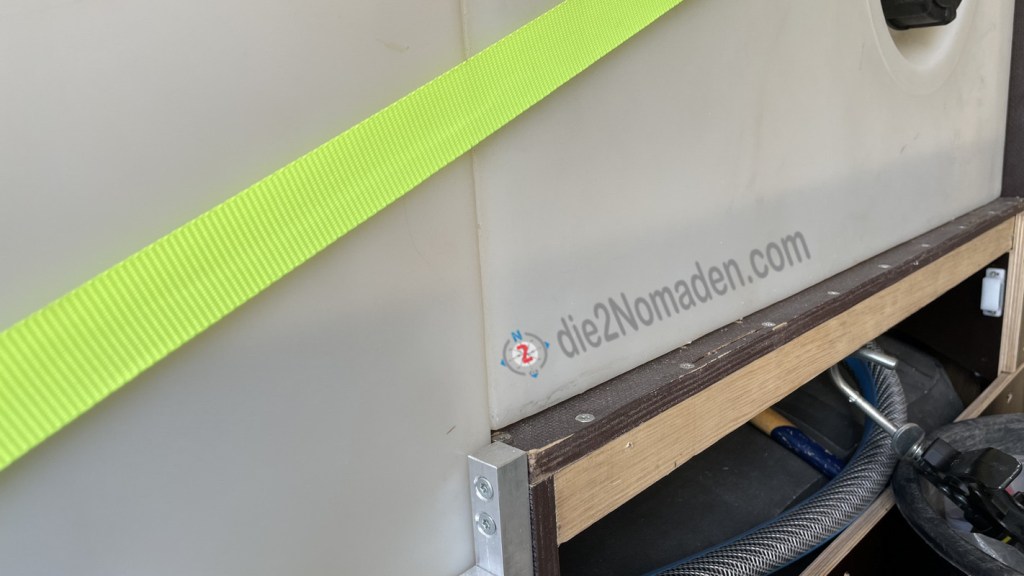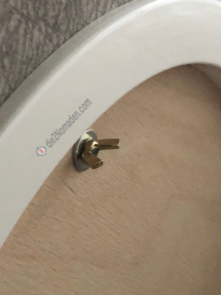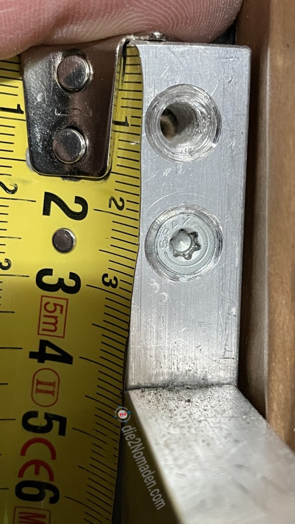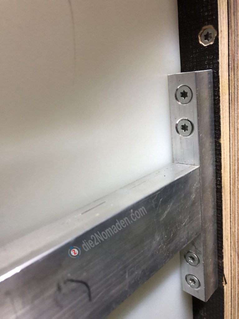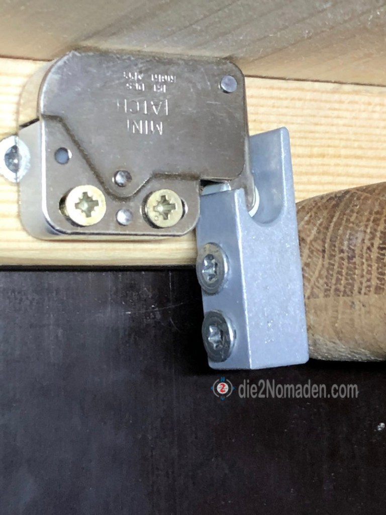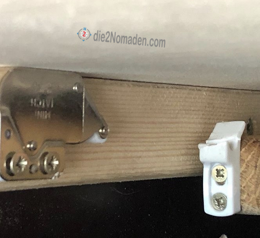 Einbau an der exakt selben Position und siehe da … 2 Jahre danach halten diese Teile unseren Ausziehtisch noch immer sicher während der Fahrt.