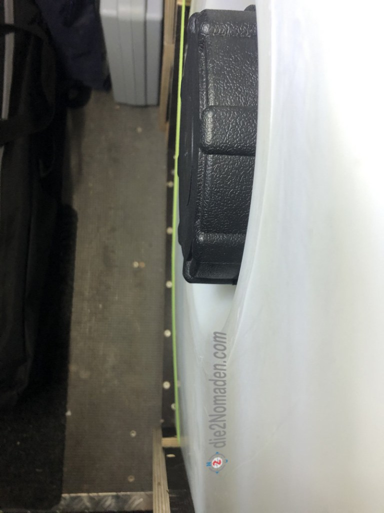 In der Praxis, also nach der Befüllung, beginnen sich die Tanks um die Mitte auszuwölben. Die Folge, die Verkleidung wird bei jeder Füllung zur Heckgarage hin herausgedrückt.