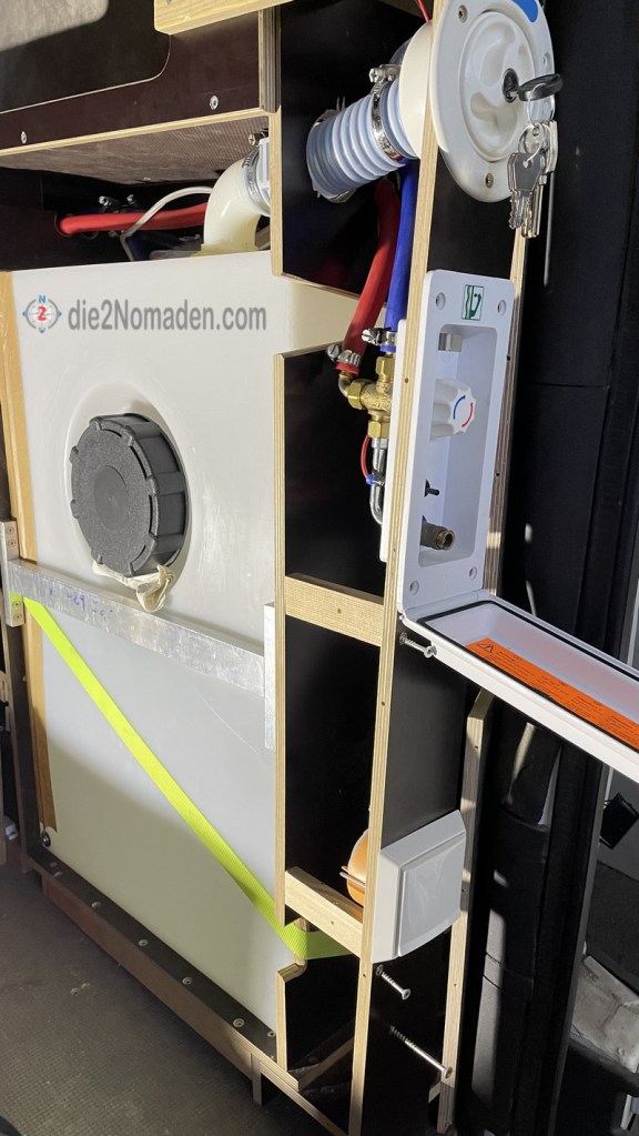 Dadurch müssen wir beim Entleeren der Tanks nicht mehr aussteigen, schauen, ob wir über dem Auslass stehen und irgendwelche Ventile manuell öffnen; was für ein Traum.