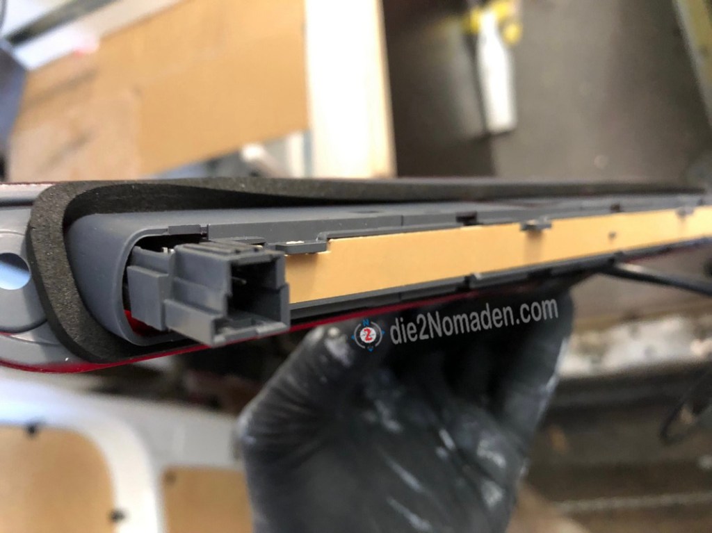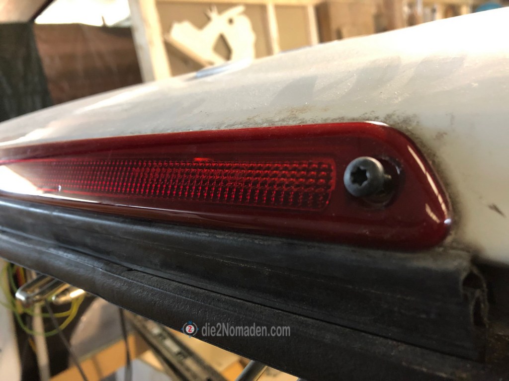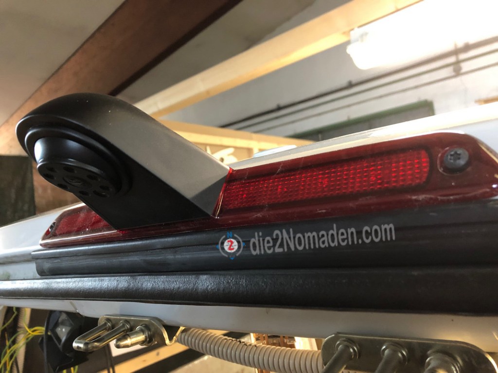 Die Wichtigste für einen Van ist die Rückfahrkamera. Dazu haben wir eine originale Kamera in der Bremsleuchte für unseren Sprinter gekauft und gegen die originale Bremsleuchte ohne Kamera getauscht.