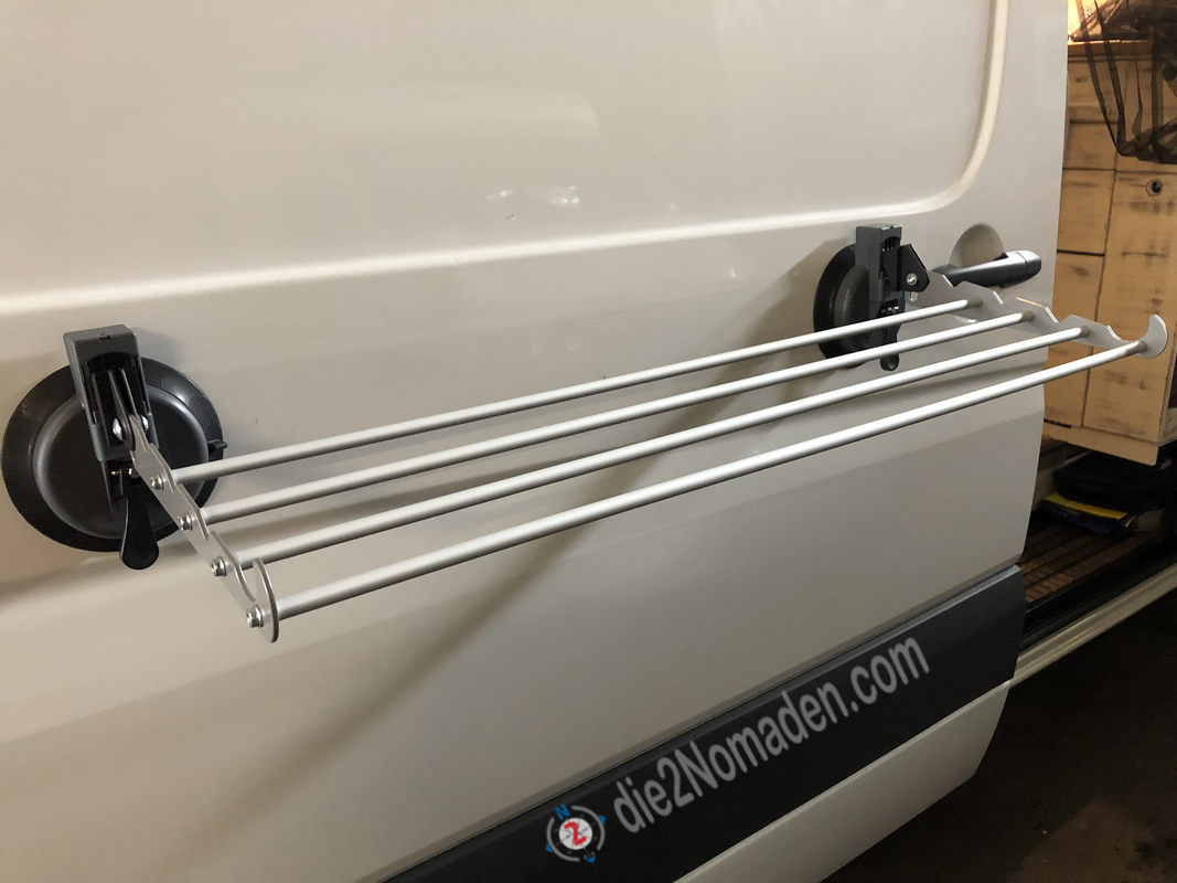 Das Thema Wäsche aufhängen, besonders feuchte, ist in einem kleinen Wohnmobil immer eine Herausforderung.