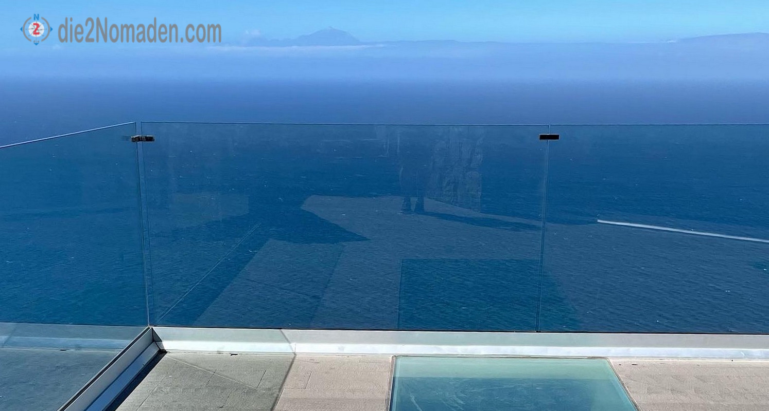 Welch unbeschreiblich traumhafte Aussicht vom sogenannten El Balcon bis hinüber nach Teneriffa. Obwohl der Wind einem fast die Haare vom Kopf bläst – sofern man welche hat –, genießen wir die Zeit auf dem Plateau. Den Kopf freikriegen, alle Gedanken verblasen zu lassen und die Freiheit zu „spüren“.