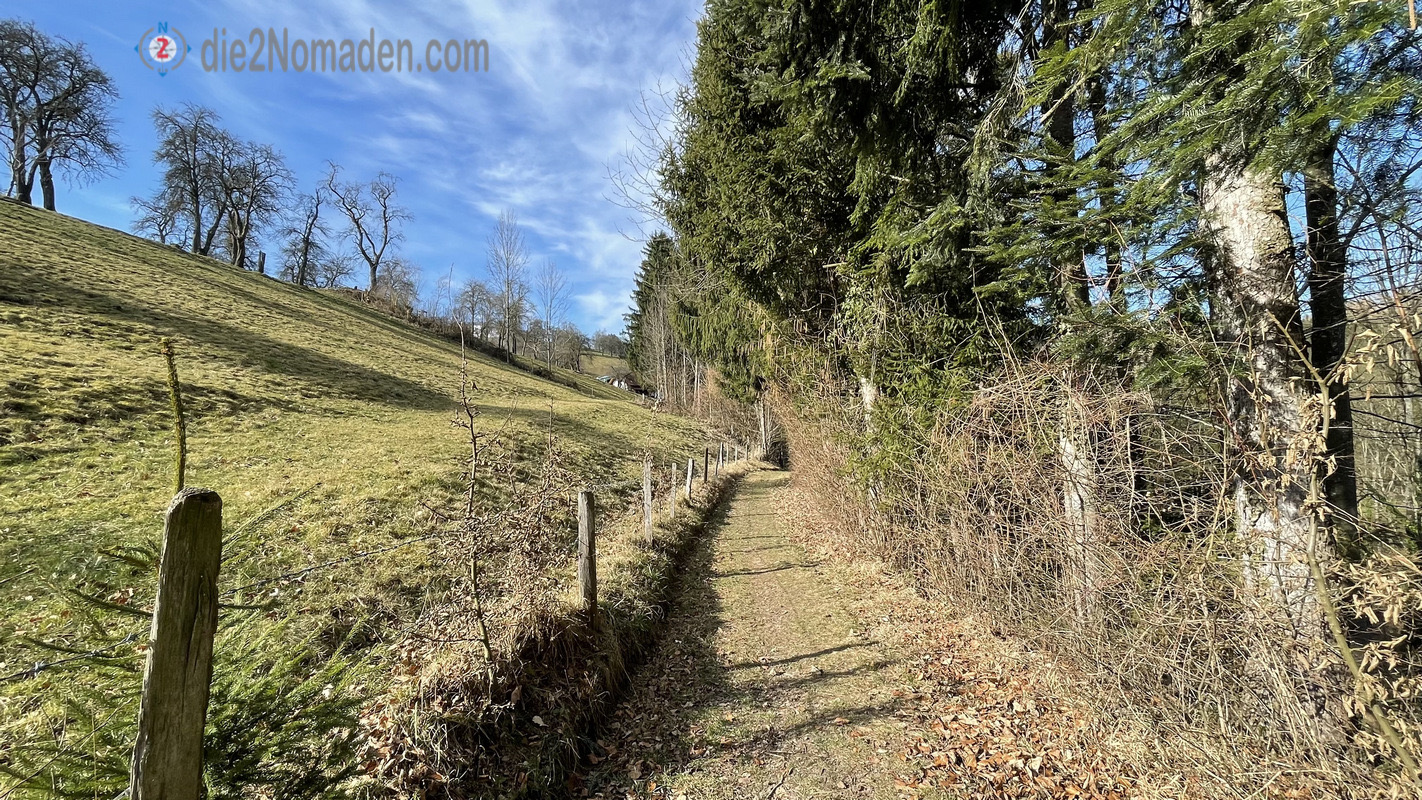 Und so folgen wir bestens gelaunt dem bisher gut beschilderten Wanderweg, wobei wir auch anhand einer grob gezeichneten GPS-Tour vorsichtshalber mitlesen. Nicht umsonst, denn nachdem wir die Straße beim Sternwirt überquert haben, ist plötzlich unser Wanderweg futsch. Den hat anscheinend ein Traktorfahrer eingepflügt.