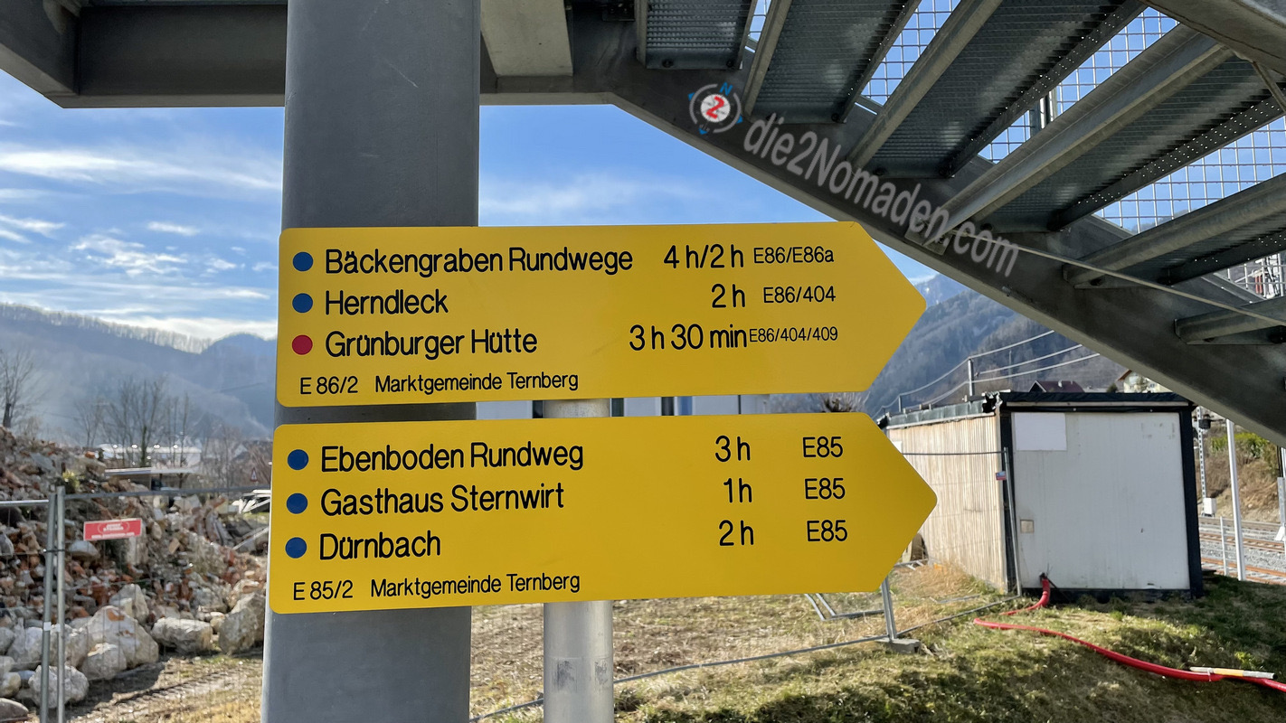 Wir parken in Ternberg am Bahnhofs-Parkplatz und folgen der Beschilderung „Ebenboden-Rundweg“. Ein paar Meter weiter gibt es die Möglichkeit, die Bahngleise zu überqueren und schon sind wir am Weg.