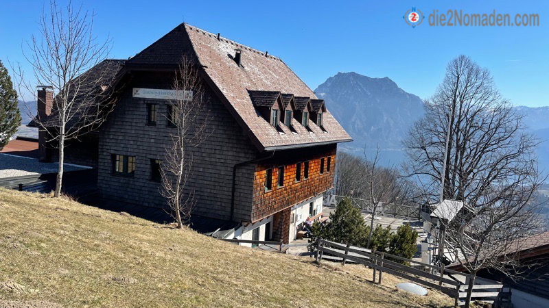 Hier würde natürlich der Gasthof Urzn eine tolle Einkehrmöglichkeit bieten, wie auch Parkmöglichkeiten und einen Spielplatz für die Kleinsten. Da unser Hunger noch nicht so groß ist, beschließen wir, ein anderes Mal wieder zu kommen und unsere Enkelkinder mitzubringen. Das Gmundnerberghaus ist leider geschlossen, schade um dieses in wunderbarer Lage liegende Haus samt Sonnenterrasse.