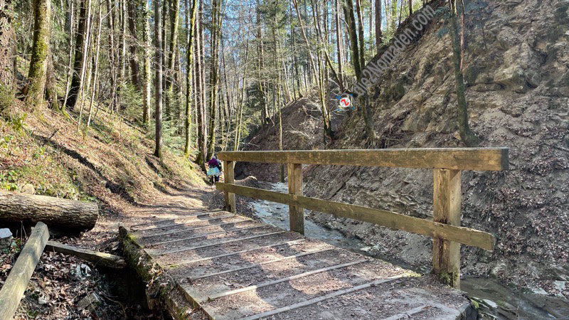 Ab hier folgen wir der Beschilderung Nr. 8 Altmünster, queren ein Feld und dann geht es hinab durch den Wald bis nach Altmünster, wo wir in den Ort einbiegen und uns ein Restaurant suchen, um hier einzukehren, bevor wir wieder den Berg hinauf müssen.
