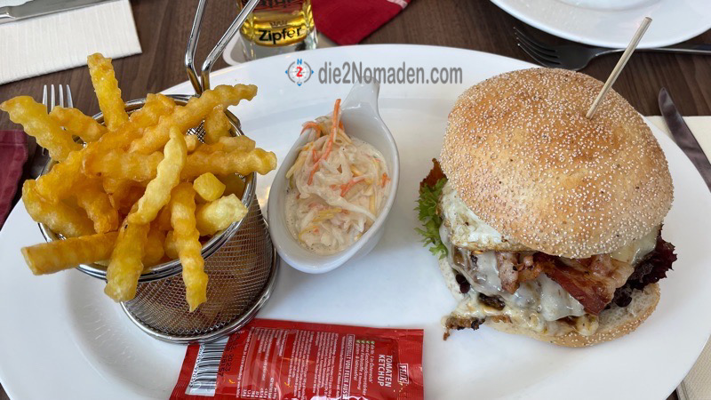 Dank TripAdvisor finden wir das Restaurant Auszeit, welches wir wärmstens empfehlen können. Hell, freundlich und sehr nette Bedienung und der Burger ist der Wahnsinn.