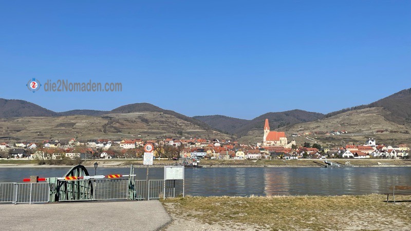 Wir parken am Fähranleger St. Lorenz gegenüber von Weißenkirchen, wo erst dieses Wochenende die Fährfahrten beginnen und können daher den Parkplatz dort nutzen.