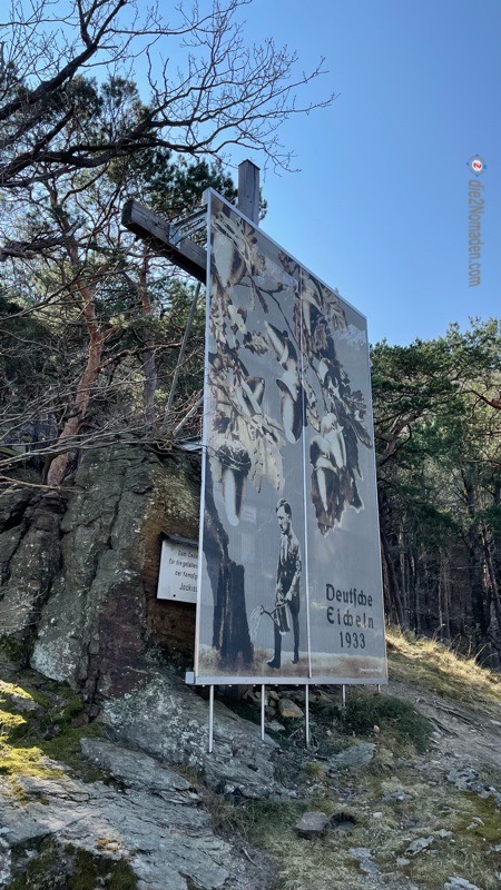 Wir erreichen schließlich den ersten Aussichtspunkt beim Mahnmal Friedenskreuz St. Lorenz. Hier hat man einen wunderbaren Blick auf die Donau und auf das gegenüberliegende Weißenkirchen.