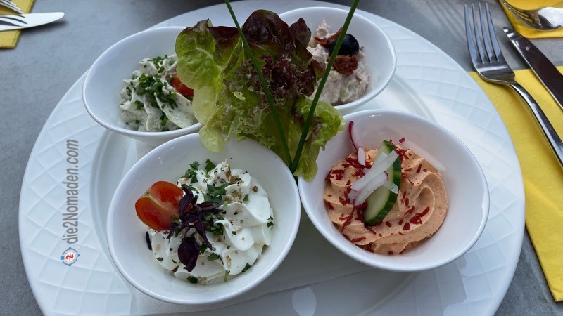 Dann geht es über die Donaubrücke und wieder auf der anderen Donauseite weiter bis nach Weißenkirchen, wo wir parken, in den Ort spazieren und uns auf die Suche nach einem Weinbauern machen. Den wir natürlich hier auch finden – Weingut Heuriger Ferdl Denk nimmt uns hungrigen und durstigen Wanderer im schönen Gastgarten auf und wir genießen eine Hauerjause und ein Achterl vom GV – what else.
