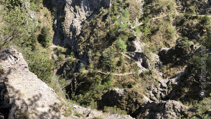 Der weitere Weg zieht sich in Serpentinen durch den Wald nach oben und erreiche nach etwa 200 hm einen tollen Aussichtspunkt. Noch 100 hm weiter oberhalb erreiche ich nun die Überraschung auf 789 m Seehöhe.