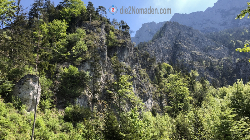 Gleich gegenüber beginnt der unmarkierte, nicht versicherte Aufstieg des Zierler Klettersteiges auf den Traunstein.