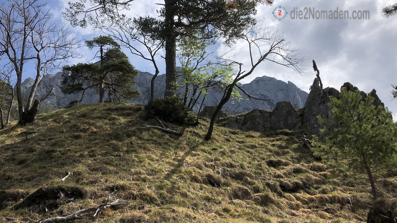 Hier geht es nördlich am Gipfel des Adlerhorstes und des Kamels vorbei. Größere und auch kleiner „Stoamanderl“ weisen uns den Weg nach oben.