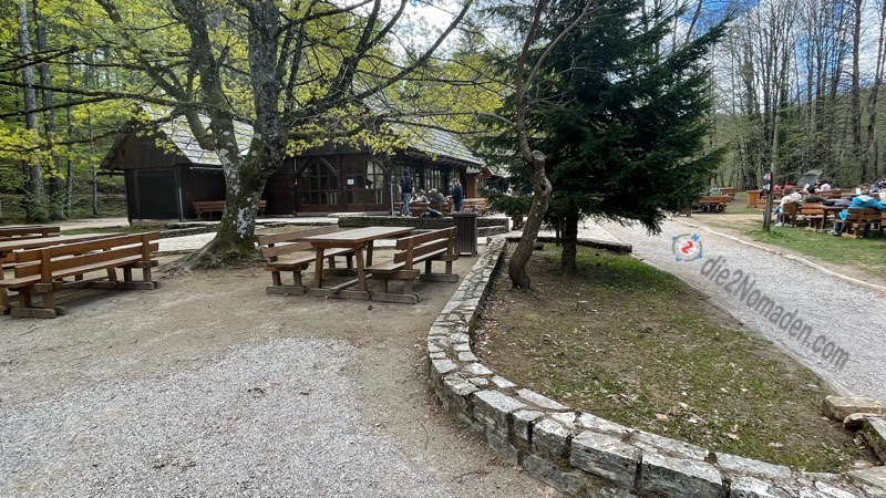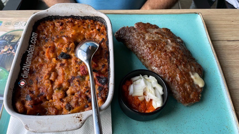 Zurück bei unseren Fahrrädern wird alles wieder montiert und nun geht es in rasantem Tempo meist bergab wieder zurück zu unserem Campingplatz, wo wir es uns im Restaurant des Holiday Ressorts bei Cevapcici und Pljeskavica gemütlich machen.