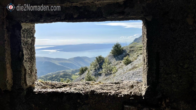Mit einem mulmigen Gefühl im Bauch verlassen wir den Flugplatz und setzen unsere Reise fort. Es geht nun Richtung Vratnik-Pass, auf dem wir den ersten Blick auf das dunkelblaue Meer erhaschen können.