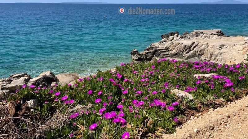 Traumhafte Aussichten entlang der Küste auf das dunkelblaue Meer zwingen uns immer wieder zum Anhalten und bestaunen.