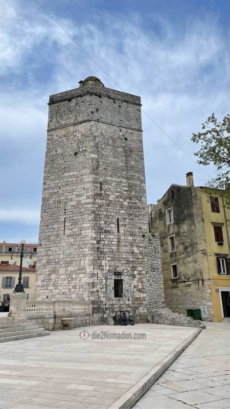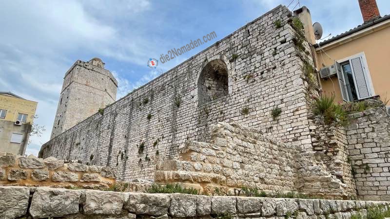 Wir erreichen bald das südliche Ende der Altstadt und bestaunen den eindrucksvollen Kapitänsturm von Zadar.
