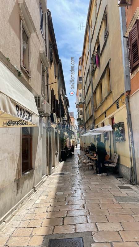 Nun nehmen wir den Weg Richtung Kapitänsturm und gelangen in ein anderes Zadar, mit alten Häusern aus der Zeit des letzten Krieges.