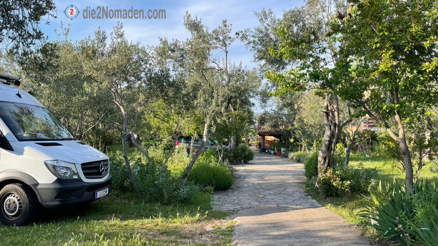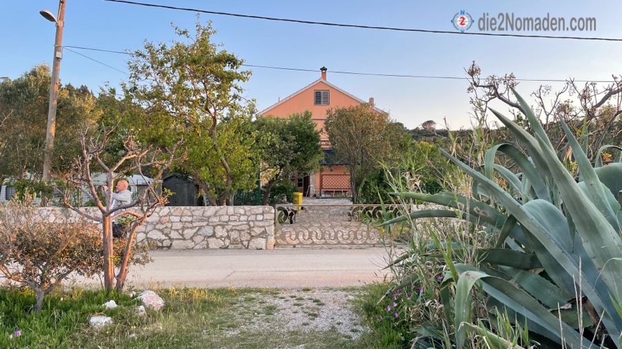 Manche Grundstückseigentümer der Insel stellen Plätze zur Verfügung und glauben, unmögliche Preise verlangen zu können. Dankend lehnen wir den einen oder anderen ab und kommen schließlich kurz vor Tkon zum Camp Oliva von Franka und Marenko.