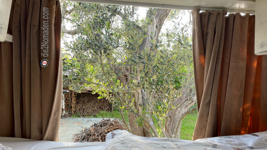 Hier, im Olivenhain bzw. in ihrem eigenen Garten fühlen wir uns wie zu Hause.