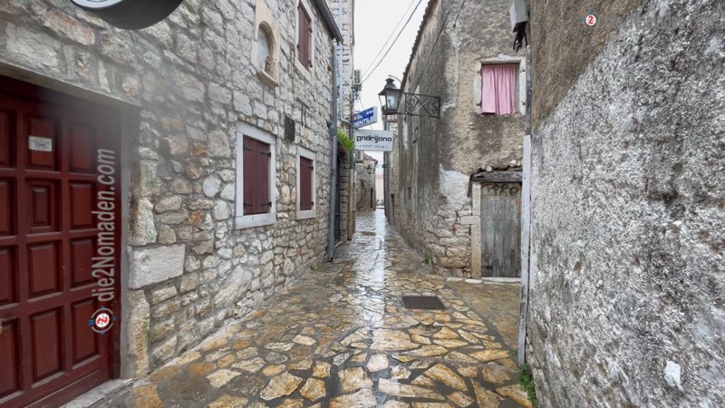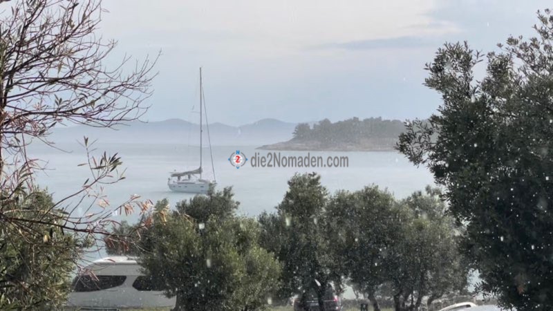 Das Nieseln will nicht aufhören und so beschließen wir, einige Kilometer weiter nach Pakoštane zu fahren.