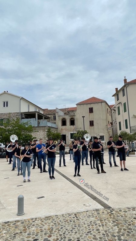 Die Musikkapelle von Vodice aus Slowenien macht Werbung für ihre Auftritte und so kommen auch wir in den Genuss von zwei netten Musikeinlagen.