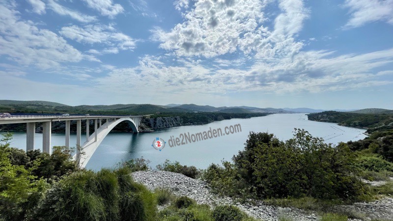 Zwischen den kleinen Örtchen Brodarica und Zaboric überspannt die Morinje-Brücke den Zulauf der Morinje-Bucht von der Adria.