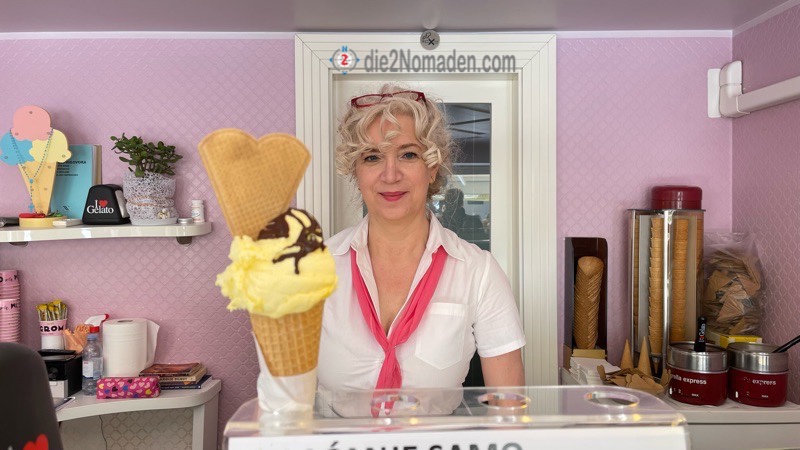 Wir schlendern durch die Gasserl, genehmigen uns eine Erfrischung beim Grom. Ich bin wohl der einzige, der den italienischen Eisladen nicht kennt, doch das Eis ist vom Feinsten.