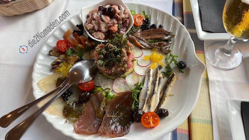Da wir bis dato noch nichts gegessen haben, suchen wir uns eine kleine Konoba und genießen Meeresfrüchte auf unterschiedliche Arten.