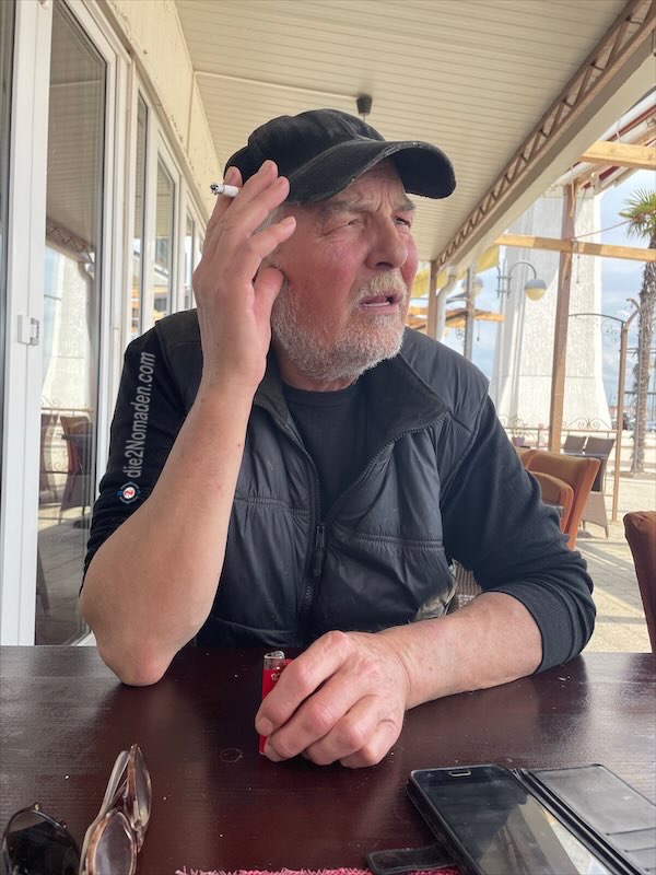 Wir tauschen unsere Daten aus, laden ihn auch ein, unsere Reise auf unserer Homepage mit zu verfolgen.