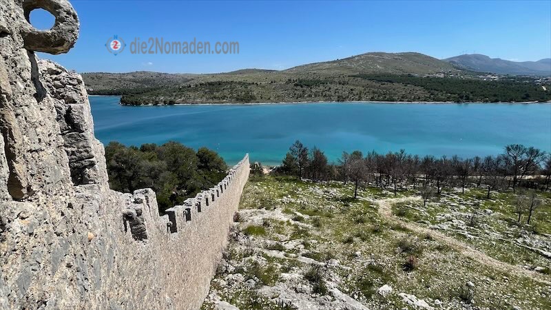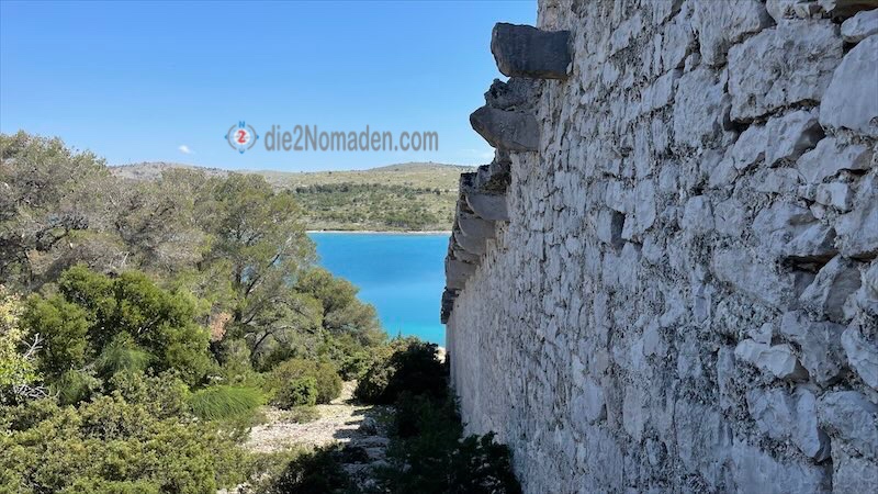Auf der Halbinsel Oštrica gibt es eine interessante Befestigungsmauer, welche man schon von Weitem sieht und sehr mysteriös und unerreichbar scheint.