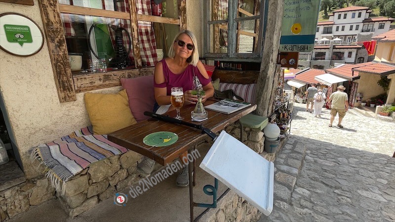 Nach über zwei Stunden beenden wir unsere Erkundung und verlassen diese interessante Anlage und gehen wieder durch den alten „Kneipenmarkt“ zurück, nicht ohne uns noch in einem dieser niedlichen Lokale eine Erfrischung in der Hitze zu genehmigen.