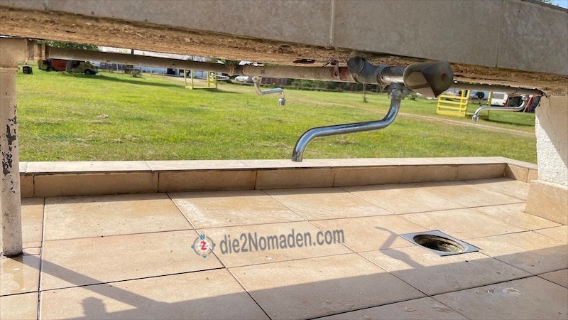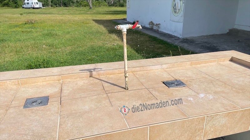 Endlich am Platz, große Hitze, kein direkter Meerzugang, also ab zur Dusche.