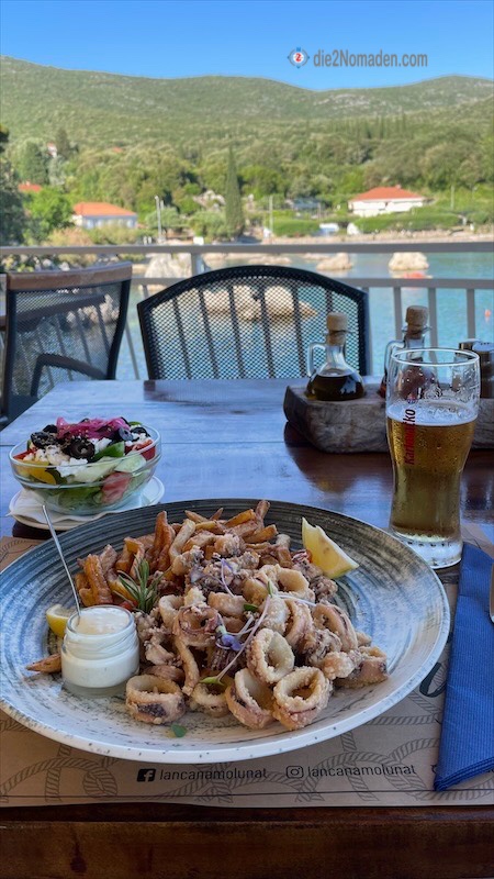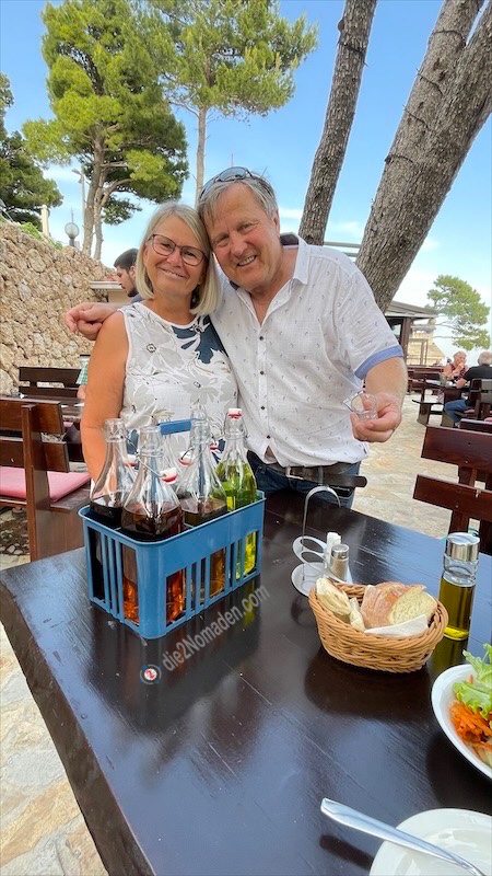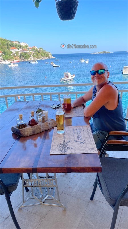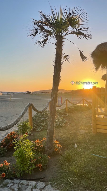 Auch okay und nach einer solchen anstrengenden Fahrt genießen wir das Meer, gehen ins campeigene Lokal herrlich essen und lassen uns vom Chef persönlich herrlichen Grappa servieren.