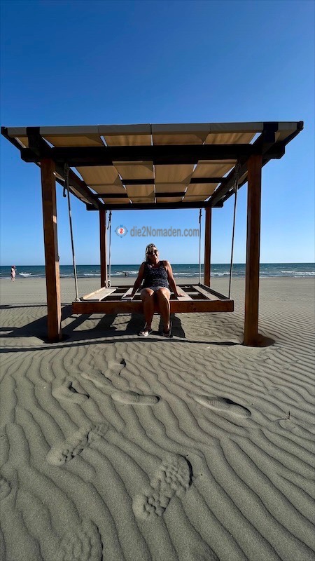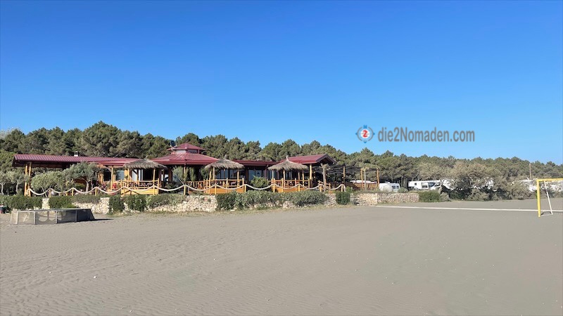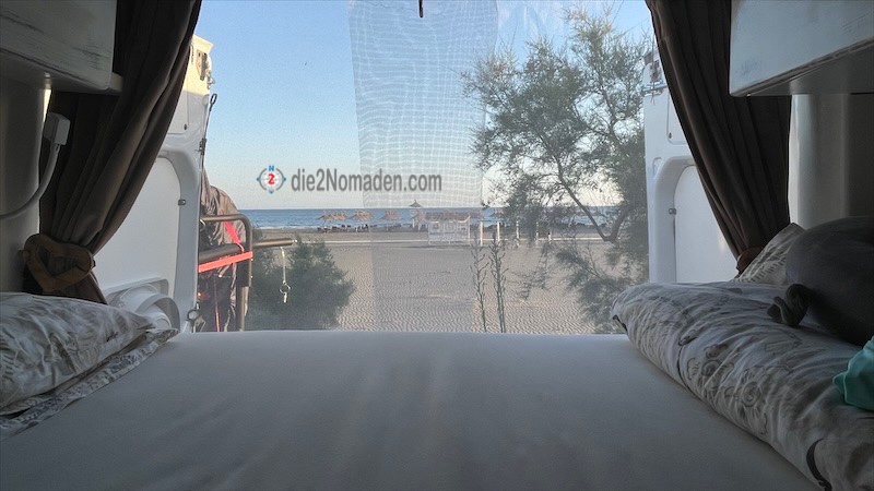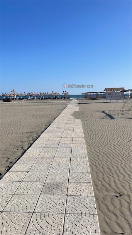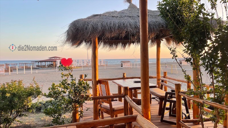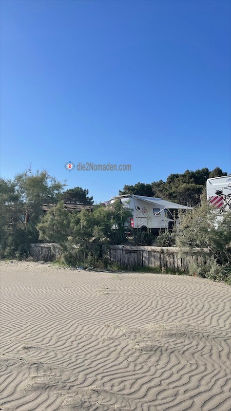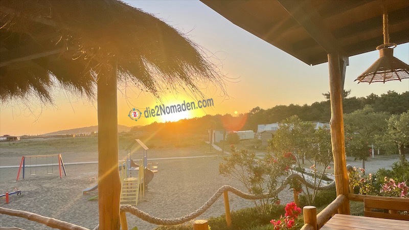 Im Camp haben wir erstmals für etwa zwei Stunden mit einer Art „Sandsturm“ zu kämpfen. Die Sicht ist getrübt und überall lagert sich der feine Sand von Strand ab, denn um Ulcinj, speziell hier am Safari Beach, gibt es Sandstrände fast wie in Italien.