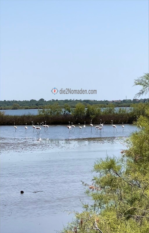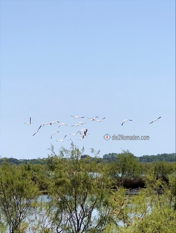 Außerdem soll man hier die einzig in Europa vorkommenden rosa Flamingos sehen, da sie während des Fluges vom Süden in den Norden hier „auftanken“, bevor der Flug weiter geht.