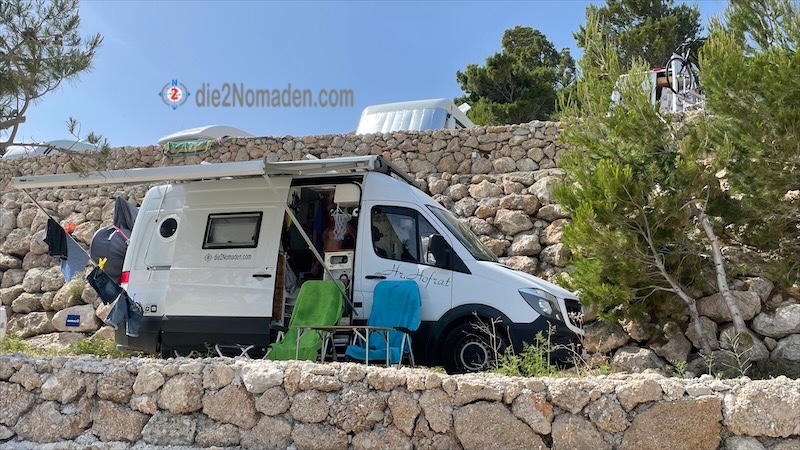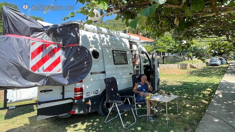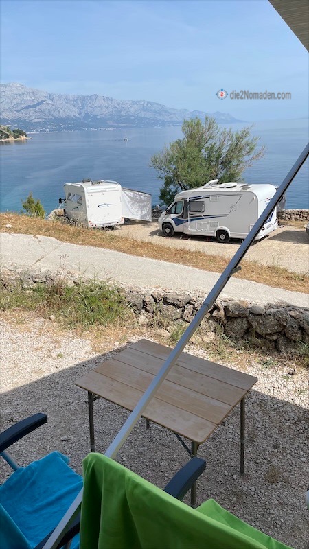 Da die Camps zu dieser Zeit schon alle ziemlich gefüllt sind, müssen wir einige Plätze anfahren, bevor wir vor Omiš auf dem Camp Sirena einen freien Platz finden. Ein wunderschön am Meer gelegenes Autokamp, das Meer dort ein Träumchen. Wir überlegen, noch einen Tag anzuhängen, doch leider sind die Stellplätze aufgrund der Pfingstferien in Deutschland allesamt reserviert.