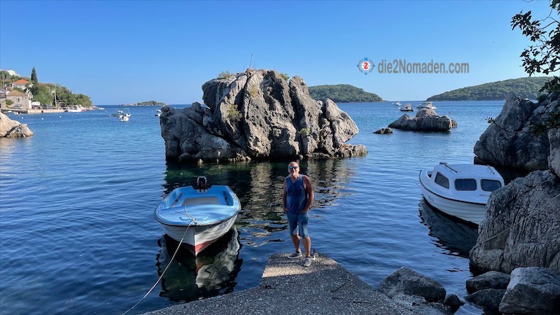 Wir starten baldigst früh und machen Kilometer um Kilometer. Bei Lepetane nehmen wir die Fähre nach Kamenari, um uns die gesamte Bucht von Kotor, Perast und Risan zu ersparen. Wir finden € 8,- und kaum Wartezeit lohnt sich allemal, wenn man die Bucht von Kotor schon kennt.
